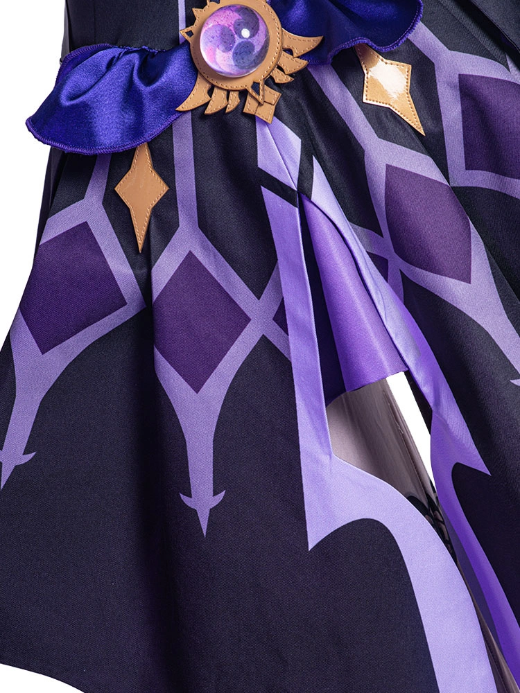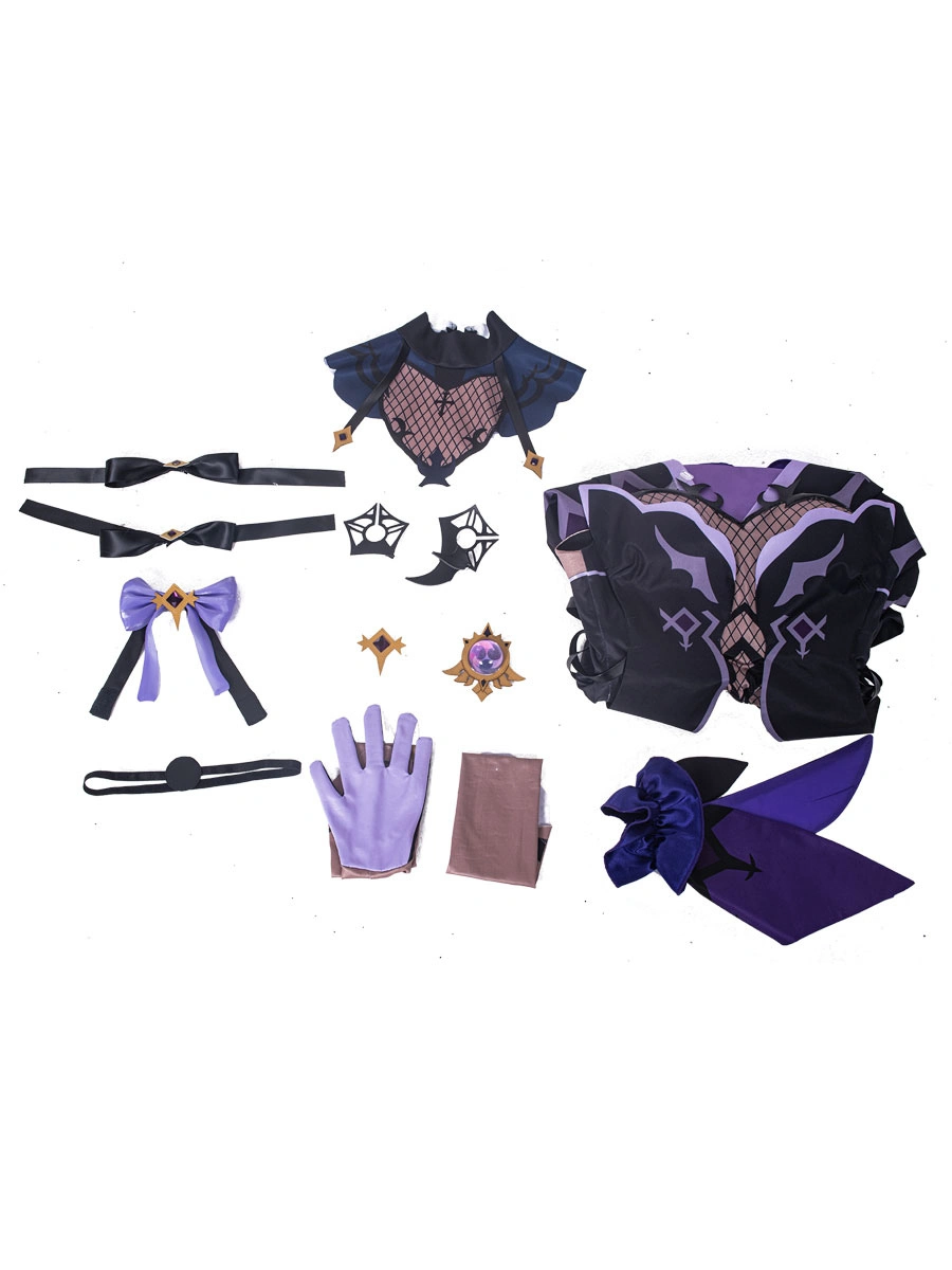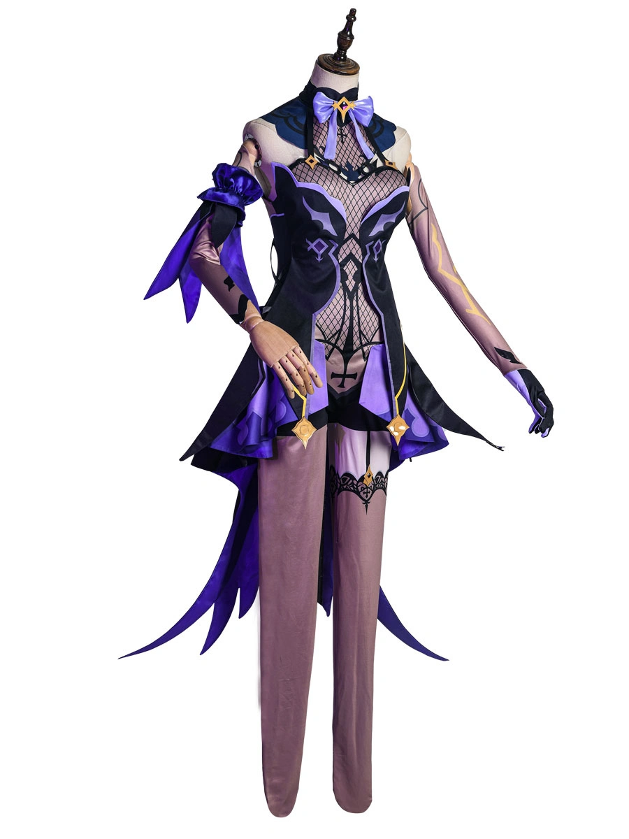 Genshin Impact Fischl Cosplay Costume Polyester Bowknot Eye Patch Dress Stocking Costume Set